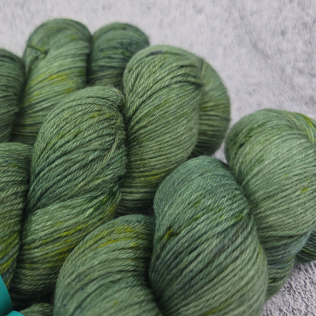 Squirm is a high twist, 4-ply, fingering weight yarn, made with 80% Superwash Merino Wool (21.5 microns) and 20% Nylon. Each skein contains approximately 400 meters per 100 grams (that's 437 yards per 3.5 oz). The high twist gives the yarn a velvety look and feels next to skin soft.